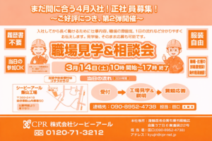 職場見学&相談会のご案内 2026/3/14(土):CPR飯山工場