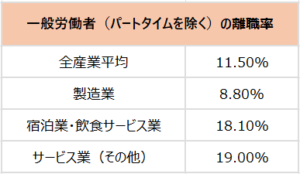 これは、全産業の平均離職率11.5%を下回る数字です。