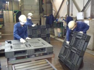 再利用するプラスチックを、種類ごとに分ける作業です。